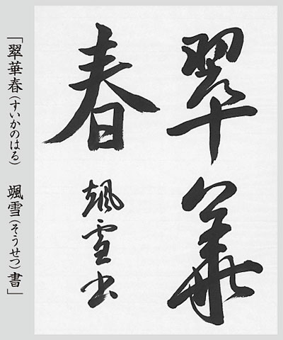 書を始めたのは定年退職後。文武の武はゴルフ,文は書か絵画と考えたが、絵画は保管にかさばるので書を選ぶ。日本書道協会で腕を磨き、現在2段。雅号は「颯雪」。漢字に専念し、年1回の協会の総合書道展などで金賞、銀賞を多数受賞。出展時は、三ヶ月をかけて150枚ほど書き下ろして1枚を出し、評価を心待ちに。 |