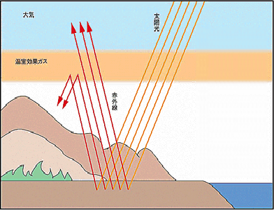 地球は温室効果ガスと呼ばれるガス層に覆われており、これが地表を適当な温度に保って生物の生成を守ってきました。このガス層の温度が上がり過ぎると地表の温度は上昇し様々な丙がおを及ぼします。ところが人間の活動の結果、大気中への二酸化炭素やメタン、フロンなどの放出が次第に増え、温室効果ガス層の濃度を上げ、温室効果が強まり地表の温度を高めるようになりました。なかでも二酸化炭素は温暖化への影響が最も高く、その大部分が石油や石炭などの化石燃料から発生します。