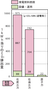 1kWh当たりの炭酸ガス排出量(g-CO2/kW)は、原料の採掘から建設・輸送・精製・運用・保守などのために消費される全てのエネルギーを対象として算定したものです。